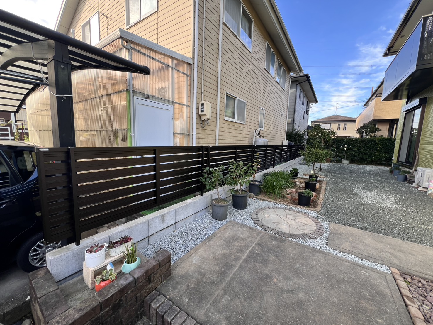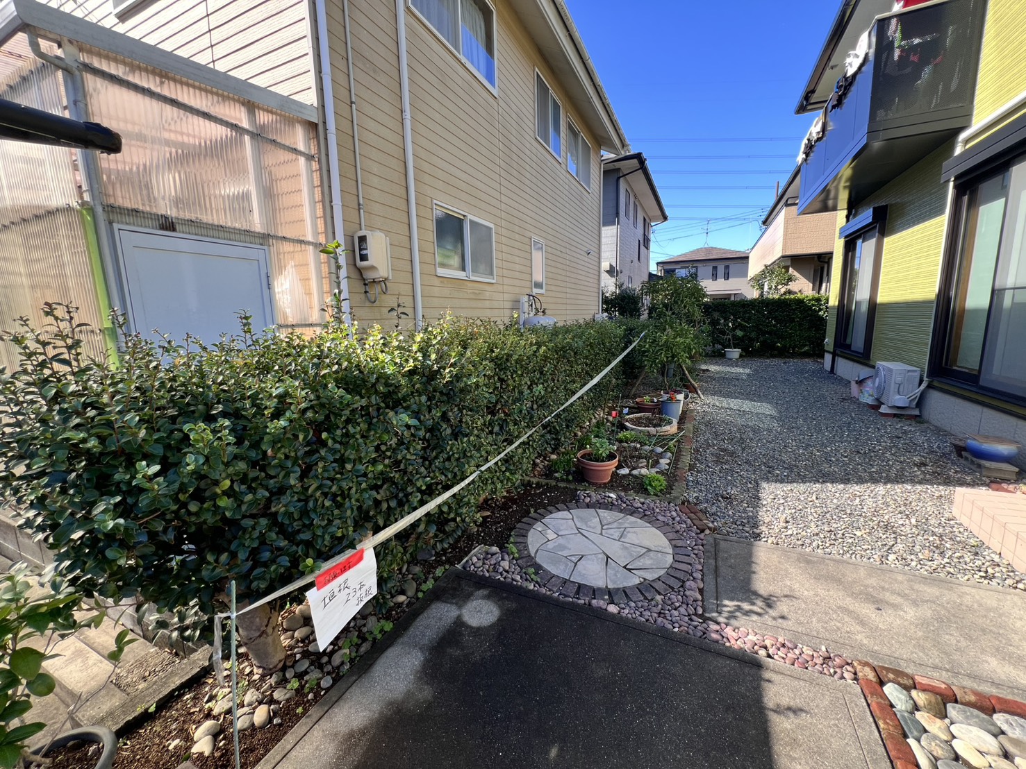 境界沿いの生垣を撤去し、管理がかからないフェンスに交換しました。